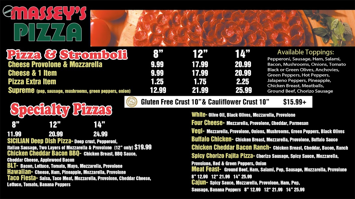 Gluten-free. Our ragin cajun pizza is topped with banana peppers, ham, oregano, pepperoni, plain cheese, provolone cheese, sausage.
