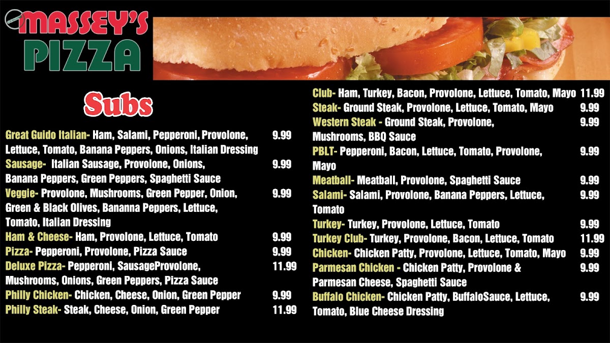 Club sub is served with bacon, ham, lettuce, mayo, provolone cheese, tomato, turkey.