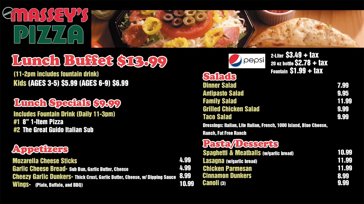 Fresh salad mix, tomato, black olives & cheddar cheese served with taco meat, salsa, taco sauce & sour cream with tortilla chips on the side.