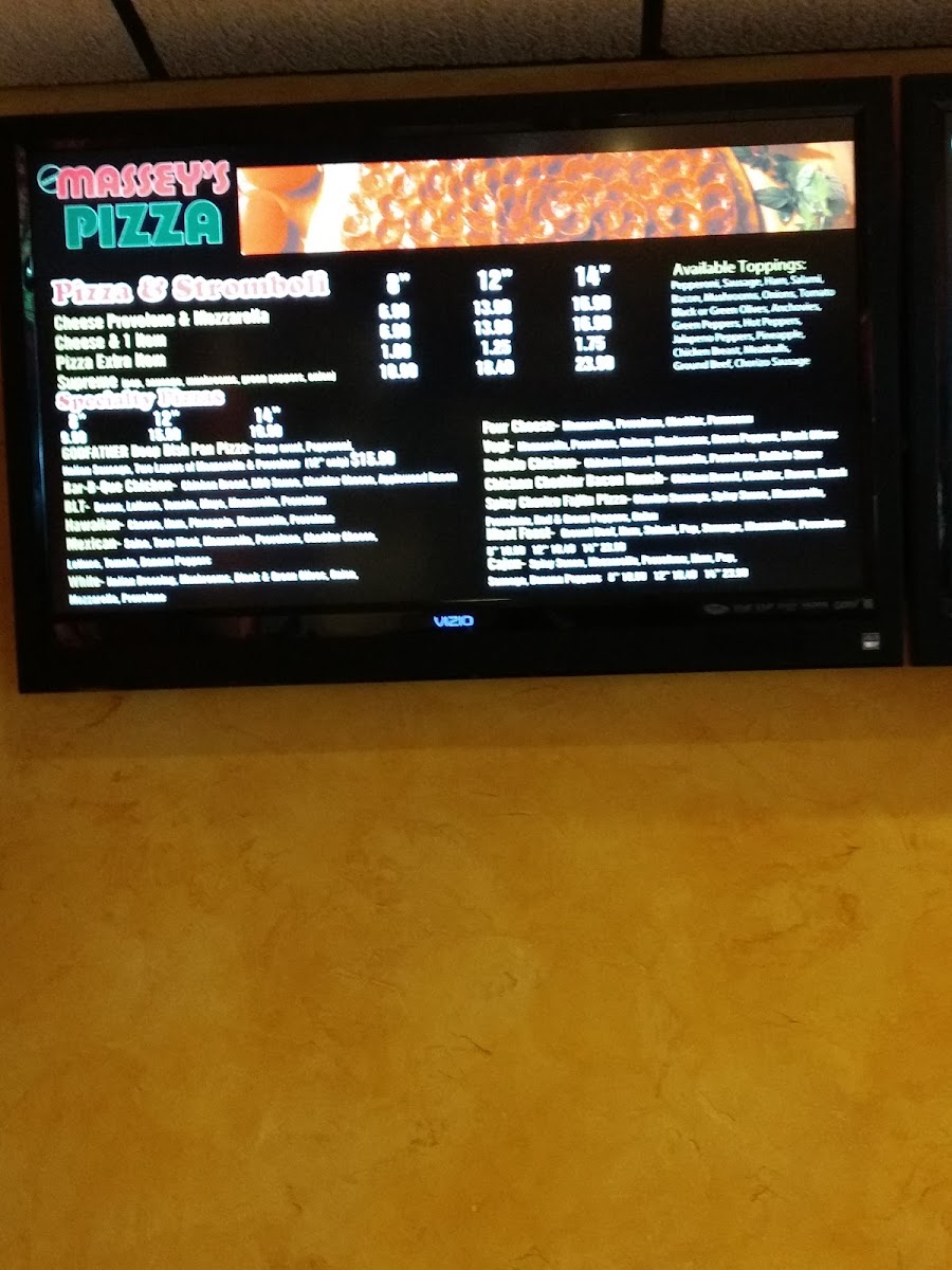 Gluten-free. Our chicken cheddar bacon BBQ pizza is topped with bacon, BBQ sauce, cheddar cheese, chicken breast, oregano, plain cheese.